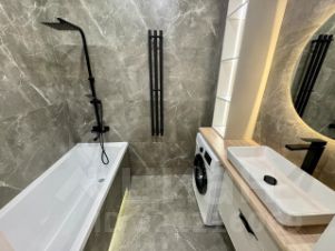 -- В квартире выполнен технологичный современный ремонт + применены Дизайнерские решения, делалась мебель под заказ.Все НОВОЕ! Укомплектована всей мебелью, техникой, аксессуарами... Полностью обставлена до мелочей, как говорится заходи и живи... :)С удобной, современной, функциональной планировкой, где две раздельные комнаты (которые закрываются дверями в противоположных частях квартиры) и раздельный с/узел!!!+ Лоджия с рабочей зоной, подогревом полов и отличным панорамным видом нагород, красивым закатом!В квартире электр. подогрев полов (в ванной комнате и на лоджии), два кондиционера (в зале и кухне), в спальне просторная кровать 1.8 м., три Smart ТV 55; 55; 35 дюймов, много зон с интерьерной подсветкой, сделано все качественно и с любовью!Вообщем, готовый вариант для комфортного проживания в экологически чистом районе города.-- Квартира с общ. пл. 55.6 м2 + лоджия 1.2 м2 = 56.8 м2-- Комнаты раздельные, площадью 16.5/12 м2-- Просторная кухня 12.8 м2Индивидуальное отопление (двух-контурный котел), который делает Вас не зависимыми от центрального отопления и экономит ваши ком. платежи.Во круг дома большая парковка, которые встречаются к сожалению очень редко. Во дворе Детская + Спортивная + Баскетбольная площадка , зона отдыха и релакса.Подьезд к дому с двух главных улиц с ул. Киевская и пр. Победы с отличным асфальтовым покрытием, что делает подьезд к дому очень удобным и комфортным.В шаговой доступности супермаркет Green, несколько продуктовых магазинов, остановка общественного транспорта.Д. сад Ягодка - 260 м.Д. сад Космос - 490 м.Лицей Космический - 1.1 км.Школа 12 - 1.75 км.