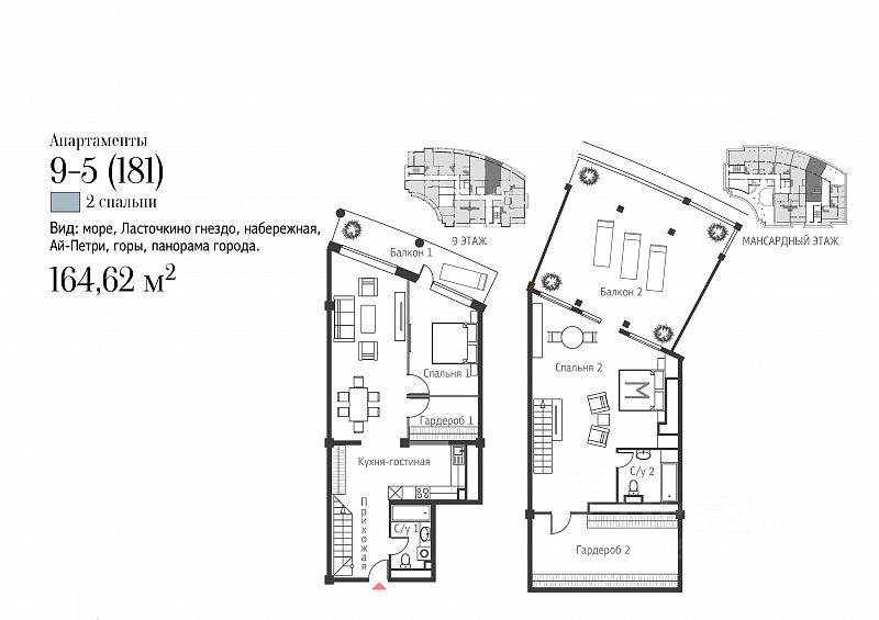 Продаются 3-комнатные апартаменты в сданном доме (Дом 9), срок сдачи: I-кв. 2021, общей площадью 192.9 кв.м., на 9 этаже. "Ялта-Плаза" - современный комплекс апартаментов оригинальной архитектуры с панорамным остеклением и витражными алюминиевыми конструкциями, который расположен в историческом центре города Ялта, всего в 70 метрах от Массандровских пляжей и в 140 метрах от начала Ялтинской набережной.