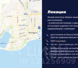 Жилой комплекс "Море" занимает особое для Крыма расположение — в живописной локации у воды, на берегу озера Мойнаки, что выгодно выделяет его среди предложений на рынке недвижимости г. Евпатории;