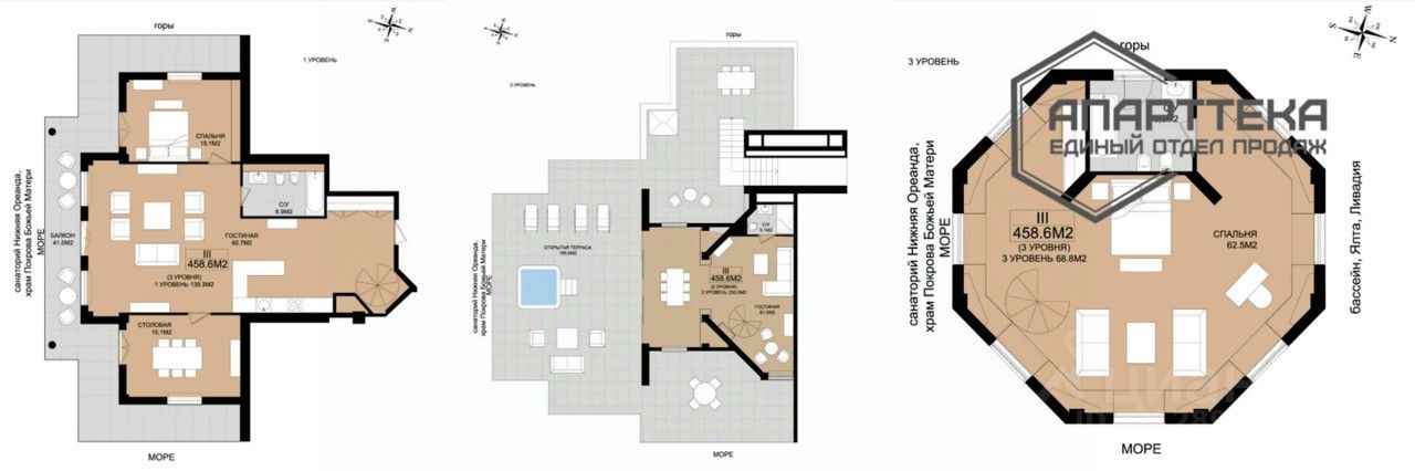 Вид 360 градусов на: открытое море, горы, хвойный лес, Ялту, Покровскую церковь. Самый большой апартамент в комплексе, обсуждаются индивидуальные условия приобретения.