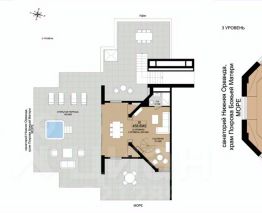 Третий уровень: мастер спальня 62.5 кв.м. со своим сан узлом, выход на террасу второго уровня.