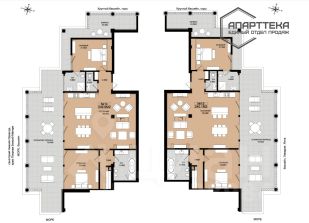 Первый лот: 2 мастер спальни со своими сан узлами и выходами у одной на свой балкон (24 кв.м.), у второй на террасу, гостевой сан узел, кухня-гостинная 68.4 кв.м., видовая терраса 75 кв.м.