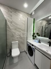 В квартире выполнен дизайнерский ремонт с использованием практичных материалов нейтральных тонов, что дает возможность легко адаптировать пространство под индивидуальные предпочтения.