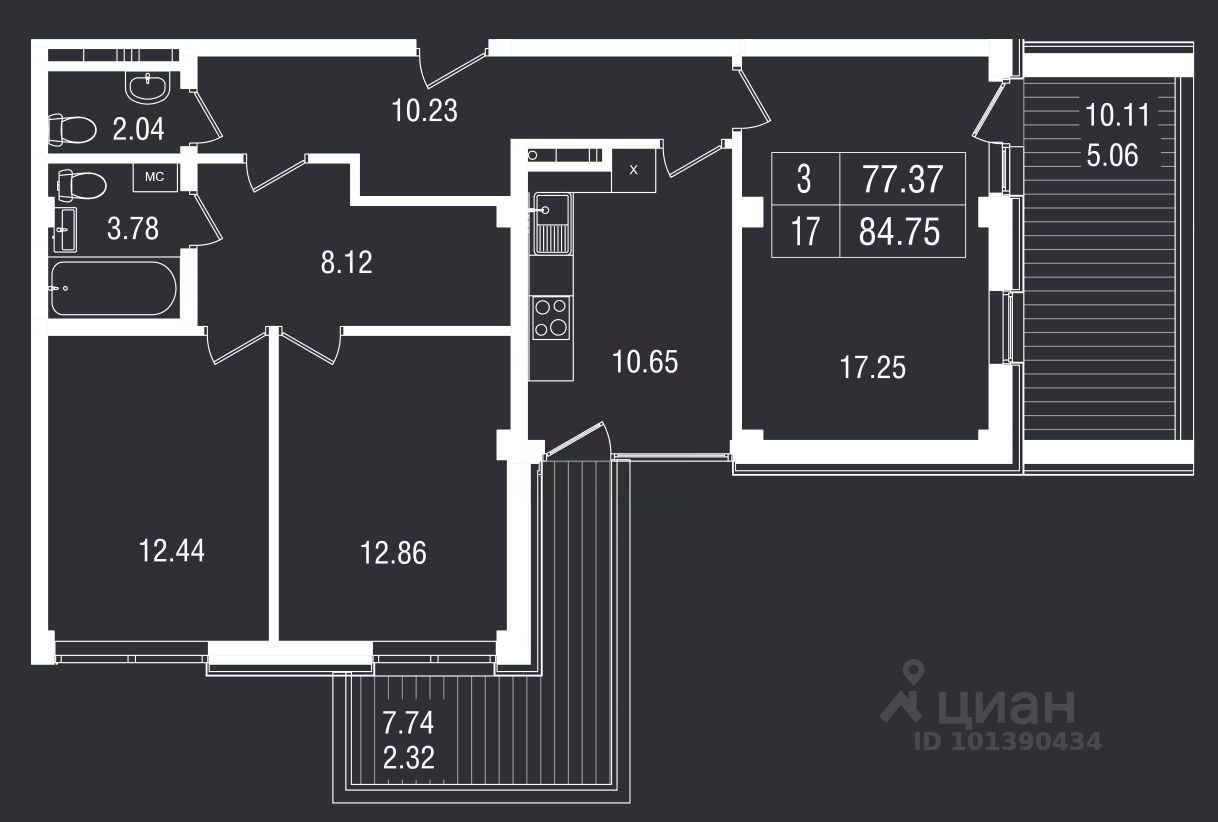 Общая площадь84,75 м²