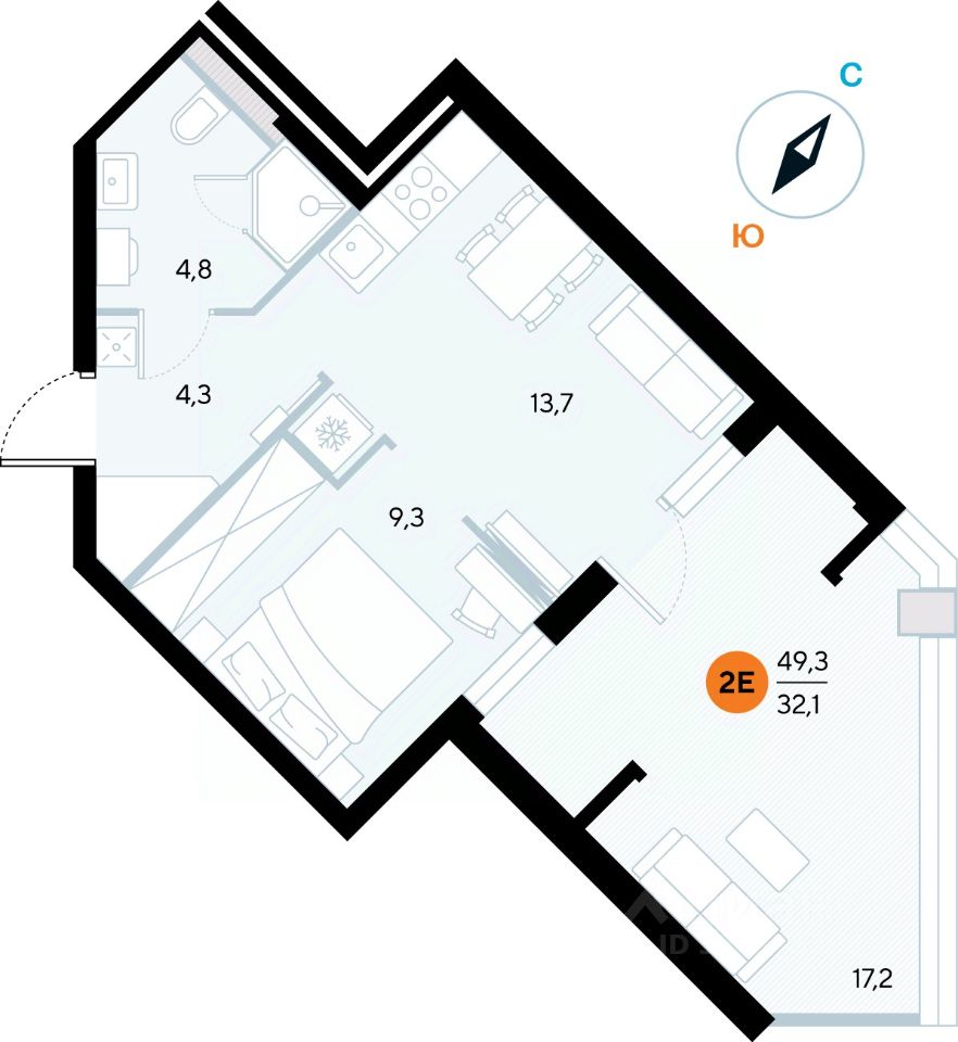 Общая площадь48,5 м²