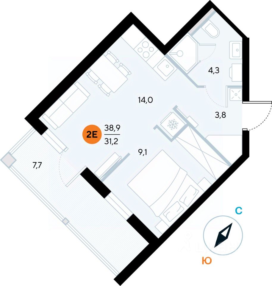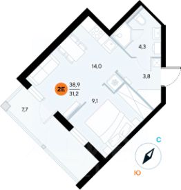 Общая площадь38,5 м²