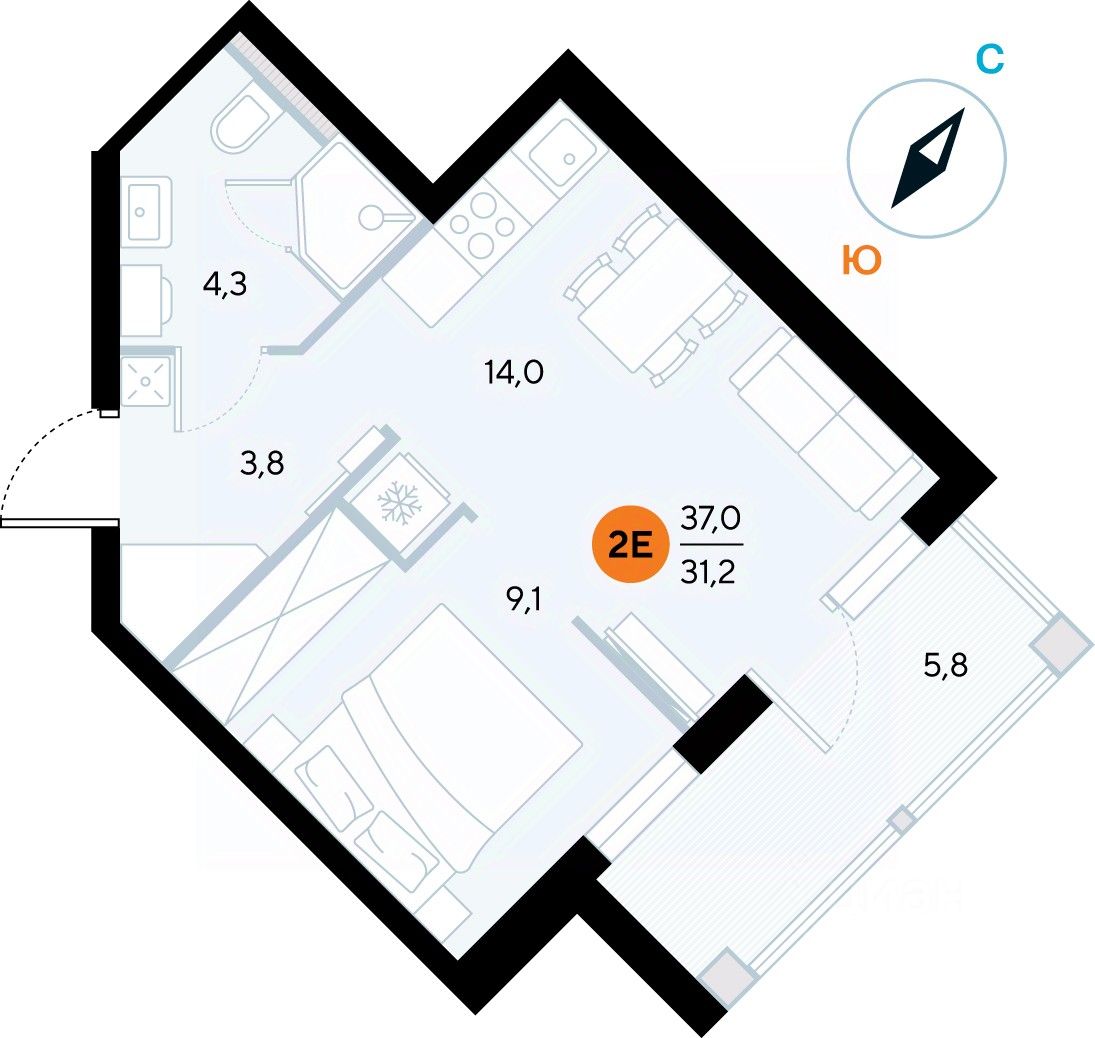 Жилая площадь9,6 м²