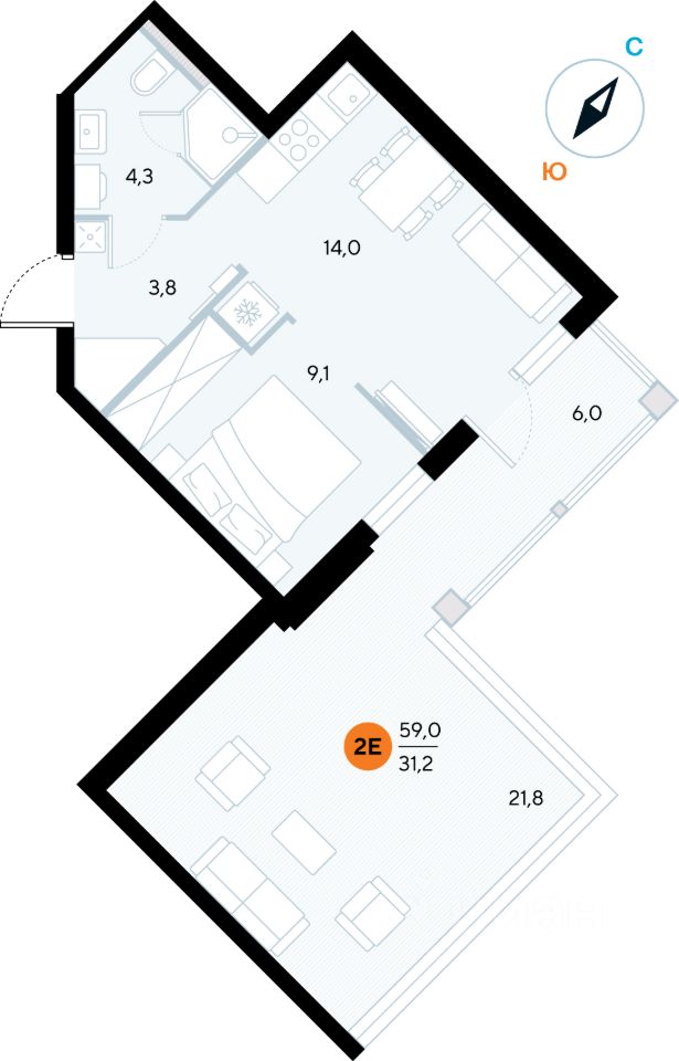 Общая площадь58,7 м²