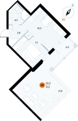 Жилая площадь9,6 м²