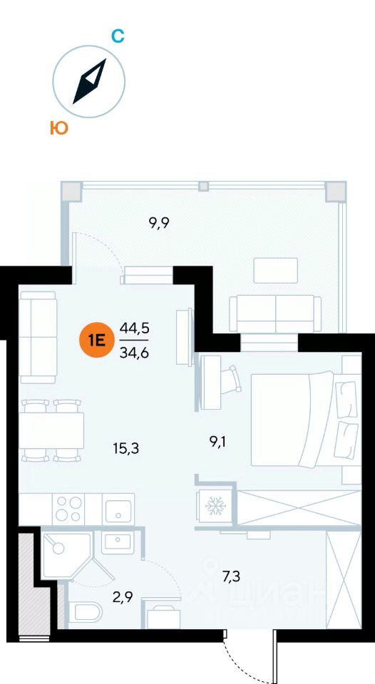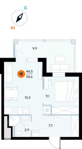 Общая площадь44,3 м²