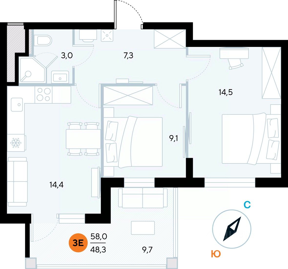 Общая площадь57,8 м²