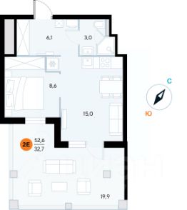 Общая площадь52,6 м²