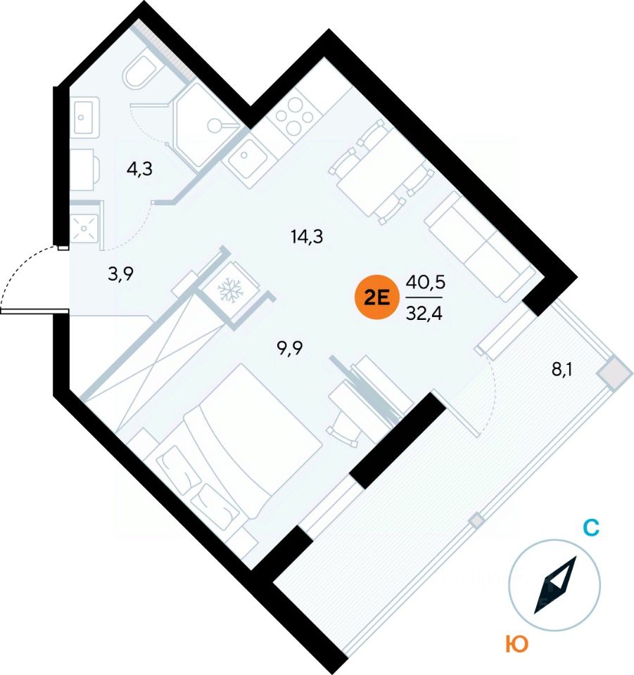 Общая площадь40,2 м²