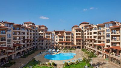 Архитектурное решение комплекса создает истинное ощущение Средиземноморья и присутствия на дорогом курорте: скатные черепичные крыши, козырьки и навесы-перголы, арочные завершения проемов, цветовая палитра отделки и фасадов, где используются оттенки желтого, охры, терракоты и бежевого.