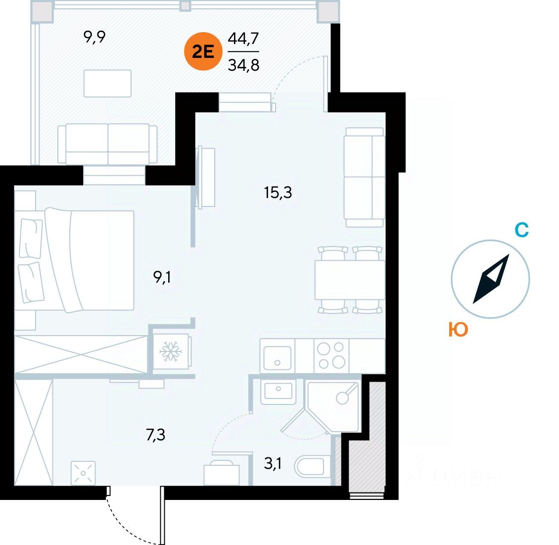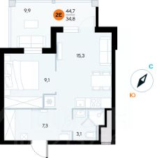 Общая площадь44,5 м²
