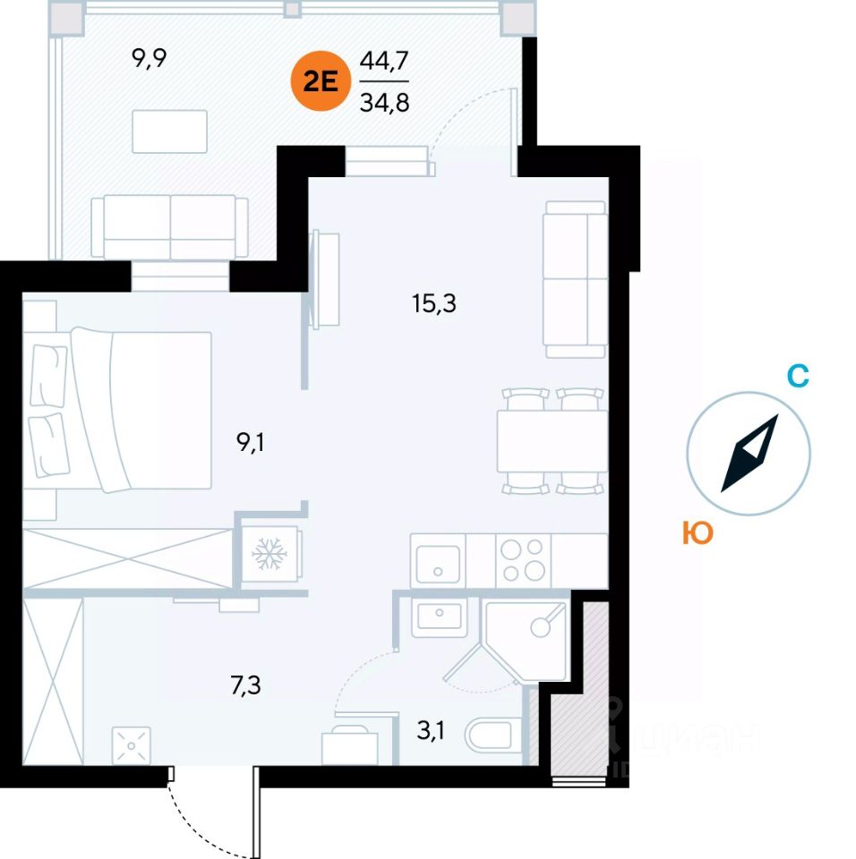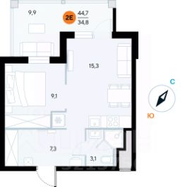 Общая площадь44,7 м²