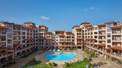 Архитектурное решение комплекса создает истинное ощущение Средиземноморья и присутствия на дорогом курорте: скатные черепичные крыши, козырьки и навесы-перголы, арочные завершения проемов, цветовая палитра отделки и фасадов, где используются оттенки желтого, охры, терракоты и бежевого.