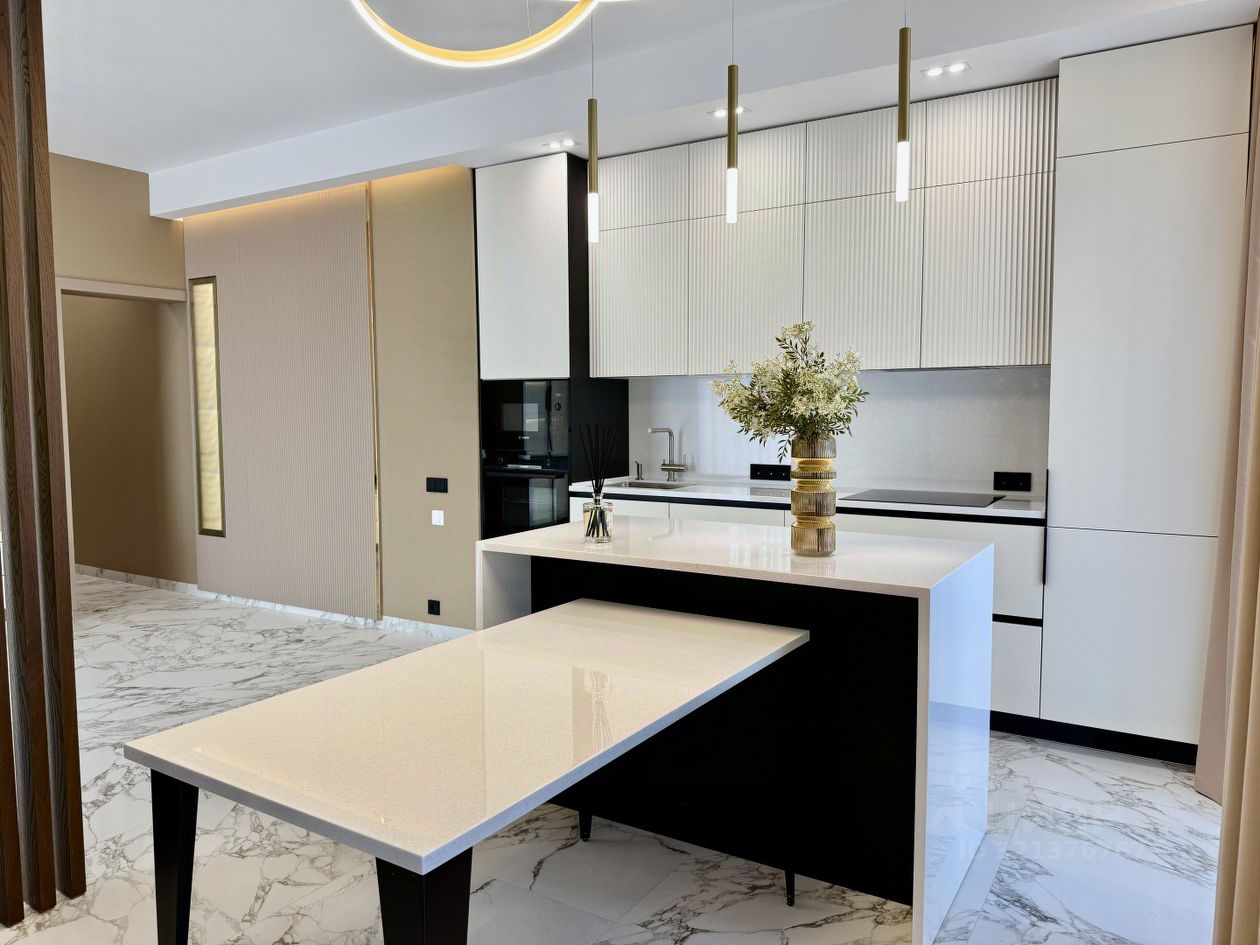 Полная готовность: Апартаменты полностью меблированы и оснащены техникой премиум-класса. Вас ждет гардеробная, техническая комната для бытовых нужд и современный санузел с ванной и душевой.