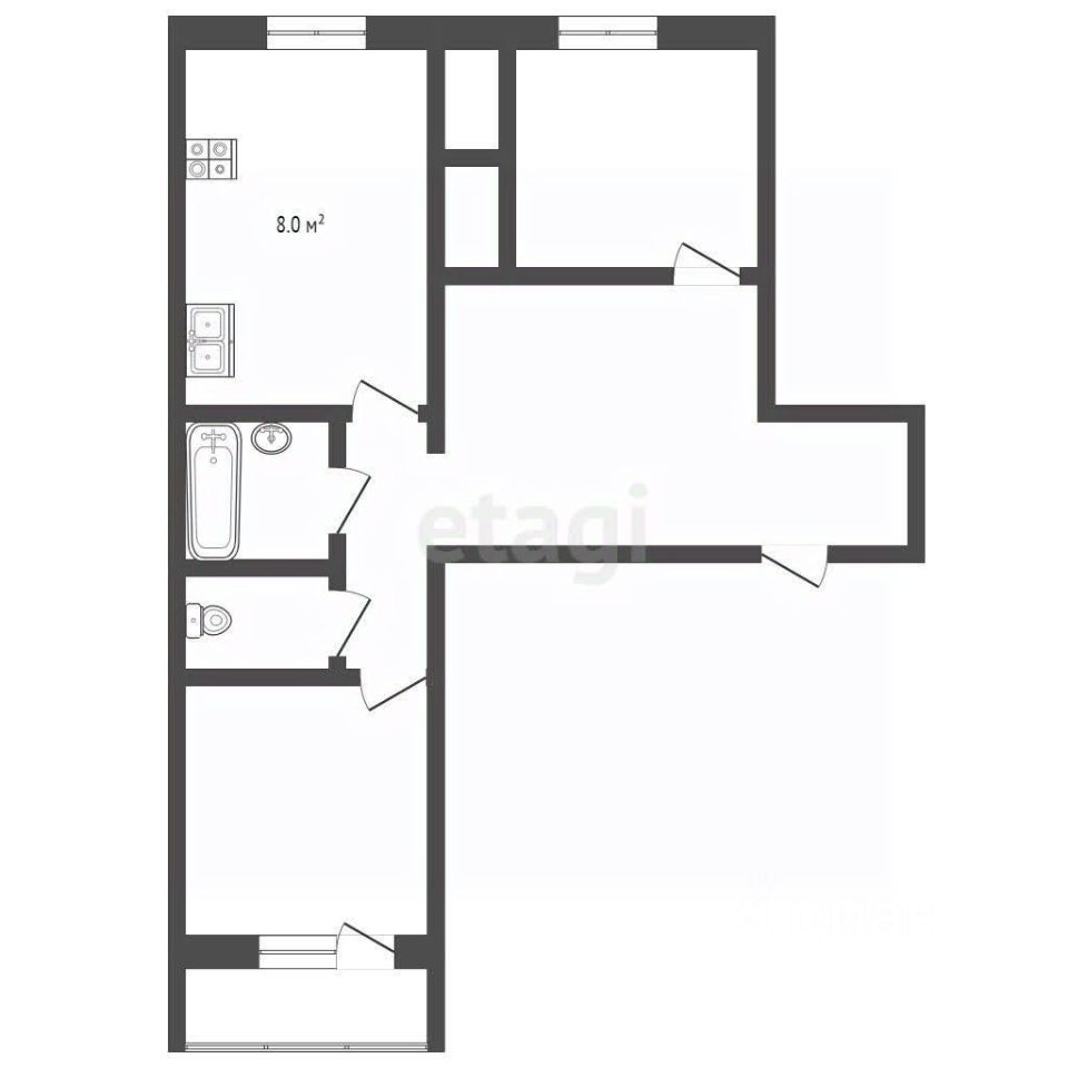 кухня -8,0 м2. Уютная квартира , комнаты раздельные, вид на разные стороны дома. Санузел раздельный в плитке .