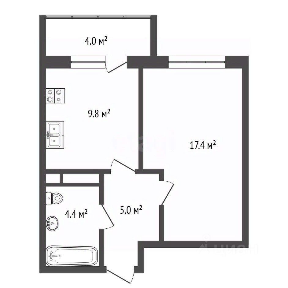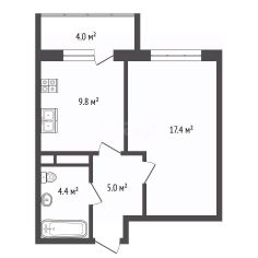 Квартира общей площадью с учетом лоджии составляет 40 м2, кухня 9.8 м2, сдается в предчистовой отделке.