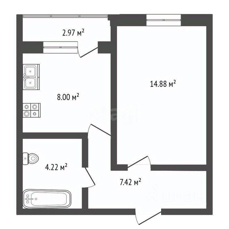 ( квартиpa нe углoвaя, pасполoжeна в серединe дома ).