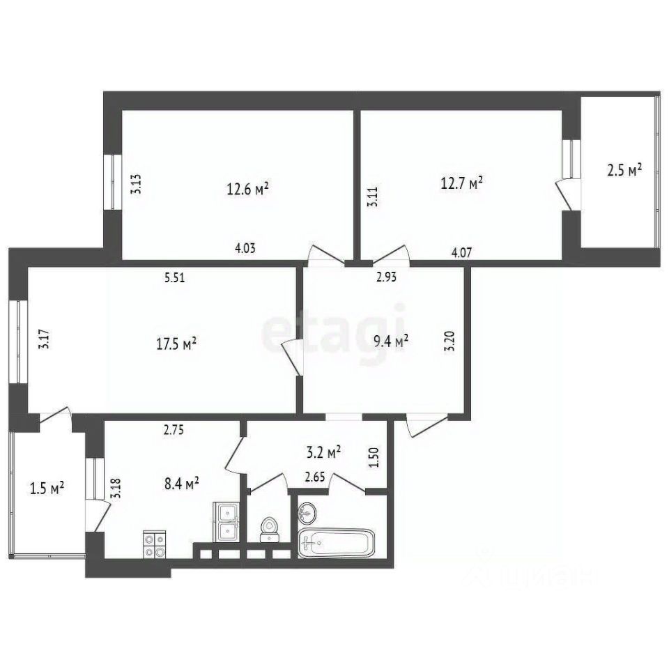 Общая площадь квартиры составляет 68,2 м², что позволяет с легкостью разместить вашу семью. Просторная кухня площадью 12,3 м² станет отличным местом для кулинарных экспериментов и семейных ужинов. Три раздельные комнаты обеспечивают максимальный комфорт и приватность для каждого члена семьи. Раздельный санузел и два уютных застекленных балкона добавляют удобства и функциональности.