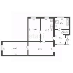 Общая площадь-65 м², жилая площадь-42 м² , площадь кухни-12 м².