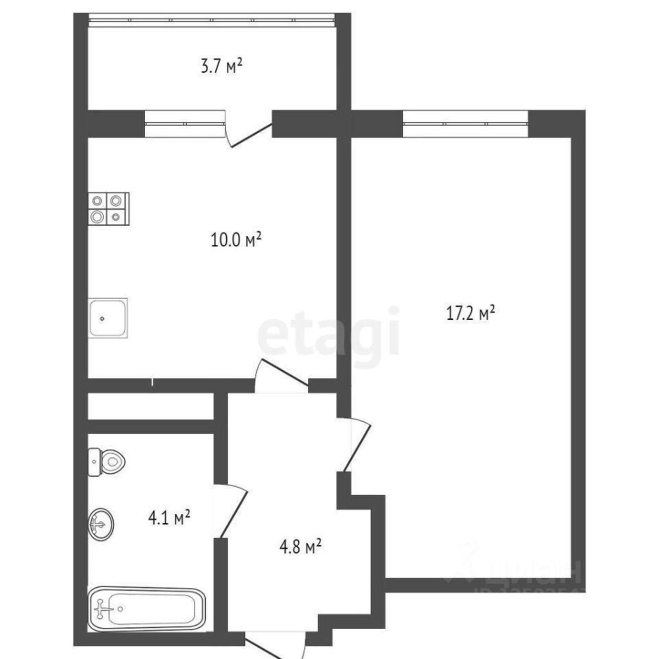 Общая площадь 42 кв.м., комната 25 кв.м., кухня 17 кв.м.