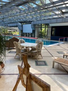 На территории дома расположены: два крытых бассейна с подогревом (15 метров и детский бассейн); SPA зона, зона банных комплексов; фитнесс-центр; космический научно-развлекательный центр для детей.