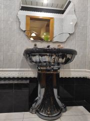 Все внутренние двери из натурального дуба с фигурной резьбой и зеркалами.