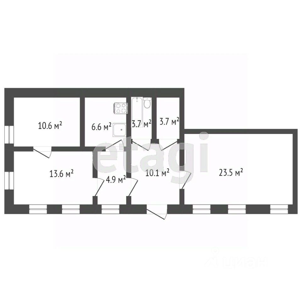 Общая площадь 70.2 кв. м, жилая 61.3 кв. м. Кухня 6 кв. м. Комнаты смежно-раздельные: две изолированные спальни - 12,5 кв.м и 27,2 кв.м и гостиная 21,6 кв.м. Выходит на тёплую, светлую сторону.