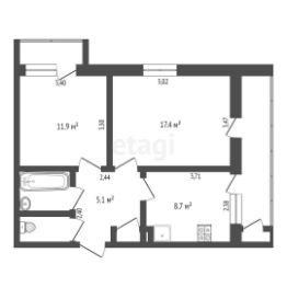Общая площадь: 57 кв. м.., жилая 29,3 кв.м., кухня: 8,7 кв.м.