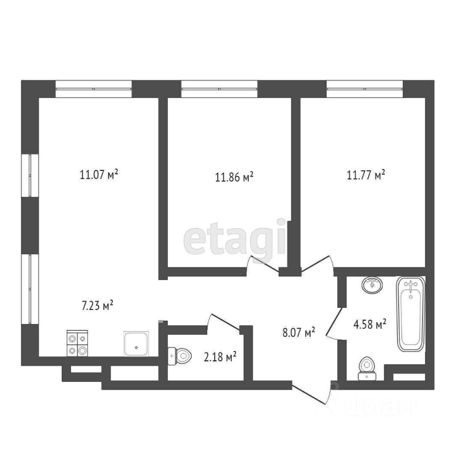 Расположена на четвёртом этаже, девятиэтажного монолитного дома. Общая площадь 56.8 кв.м., просторная кухня 7.2 кв.м.