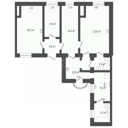 Квартира находится на первом этаже двухэтажного дома. Общая площадь квартиры 107,4 м2, высокие потолки, раздельный санузел. В квартиру два входа, имеется второй уровень, для вещей, так же имеется подвал во дворе в котором находятся одни фирмы.