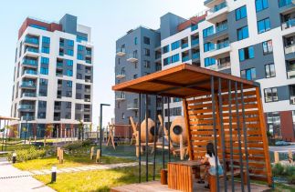 Внутренние пространства дворов жилого комплекса приватны и безопасны. Благоустроенная территория с беседками, современными игровыми комплексами, променадной площадью с арт-объектами.