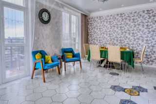 Дом клубного типа "Кировский" на 16 квартир расположен рядом с парком санатория Кирова, доступ к которому есть для жильцов. Дом построен среди реликтовых деревьев: Крымская сосна, голубая ель, кипарис. В квартире выполнен дизайнерский ремонт, установлены: автономное газовое отопление, теплый пол, итальянская сантехника, теплоизоляция потолка для нормолизации температуры, а также вся необходимая бытовая техника.