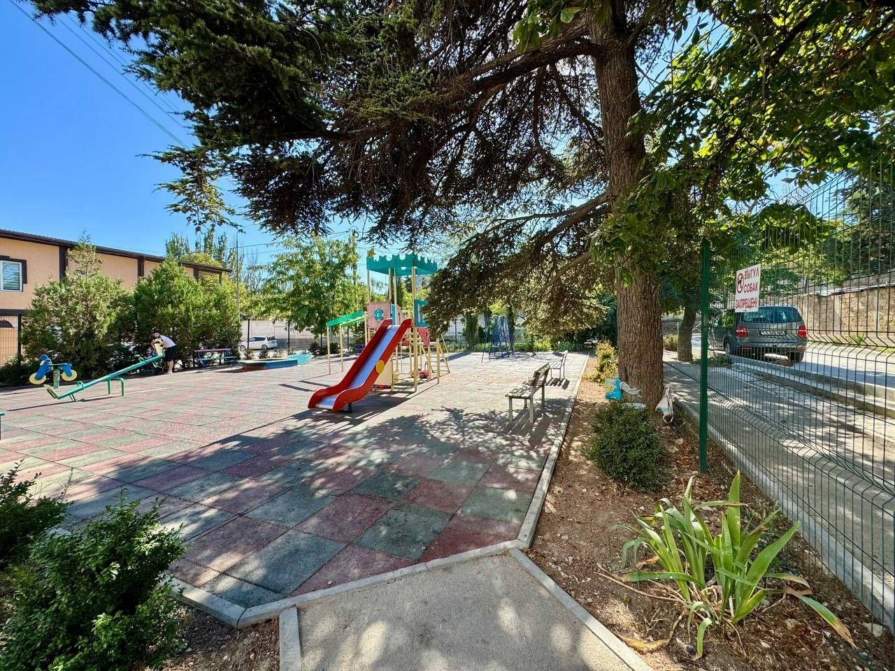 - Во дворе — современная огороженная детская площадка, безопасное место для игр и прогулок с детьми ;