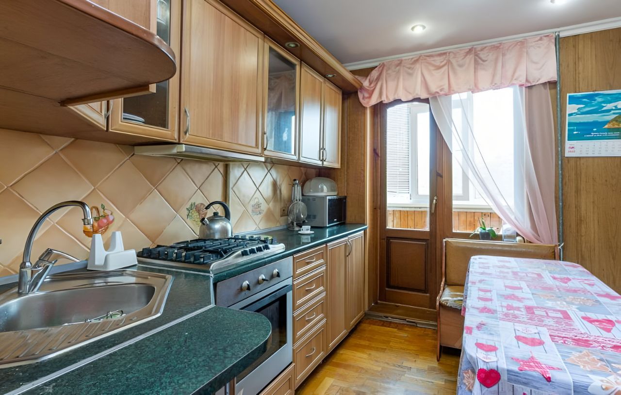 Продается светлая и уютная трехкомнатная квартира в Симферополе, расположенная на улице Лермонтова, 14. Общая площадь квартиры составляет 66,4 кв.м. кухня — 9 кв. м. Квартира находится на 4 этаже 9-этажного панельного дома, построенного в 1978 году. Высота потолков — 2,65 метра. Из окон открывается вид как на улицу, так и во двор.