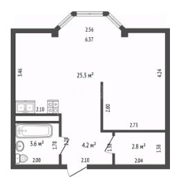 Продается современная студия площадью 35,9 м² на втором этаже нового трехэтажного дома в селе Штормовое.