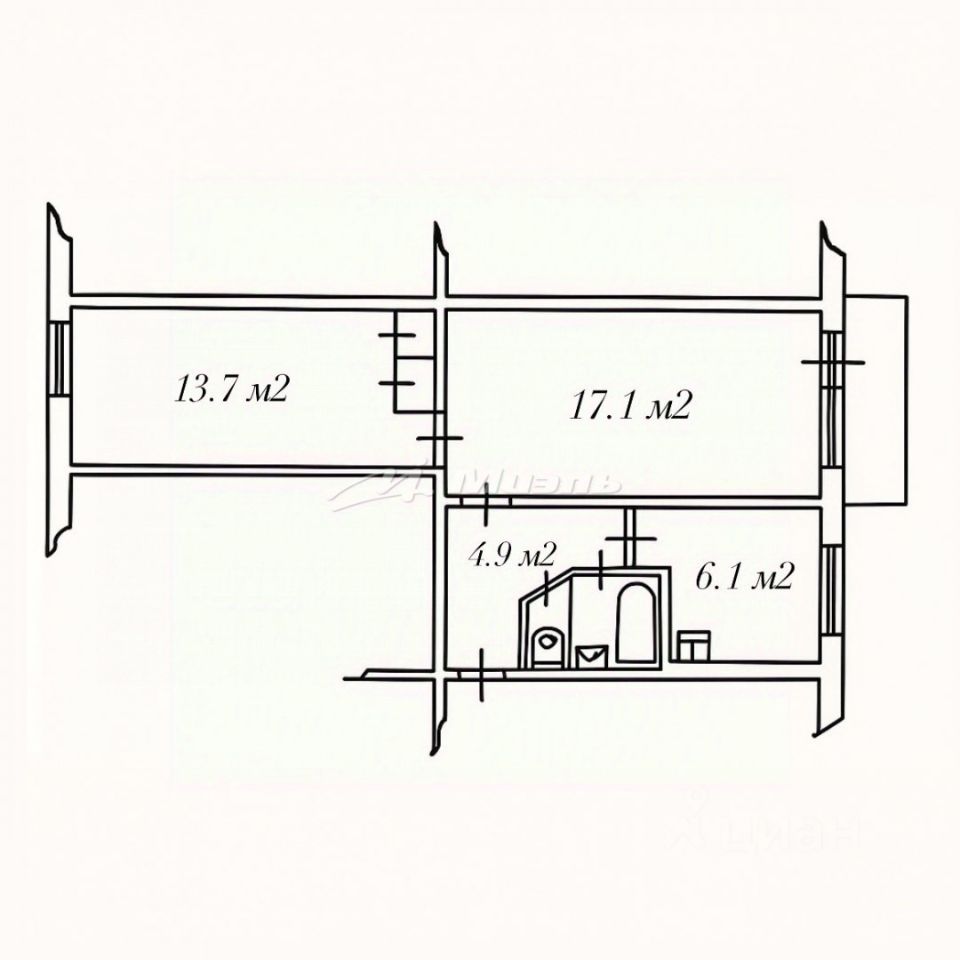 Планировка "распашонка" - 2 комнаты (13.7 кв. м., 17.1 кв. м.).