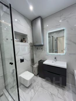 Квартира выполнена в современном минимализме, где каждый элемент продуман до мелочей. Просторная кухня, совмещенная с залом, оснащена встроенной бытовой техникой и максимально удобными местами для хранения. В отделке использованы высококачественные материалы, что создает атмосферу уюта и стиля.