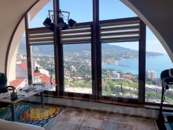 Самые ошеломительные виды на МОРЕ, на ГОРЫ, на город и набережную Ялты с высоты птичьего полёта из Вашего многокомнатного двухуровневого пентхауса, расположенного на самой высокой видовой точке Ялты. Эксклюзивное предложение. Единственный пентхаус с такими панорамными видами.