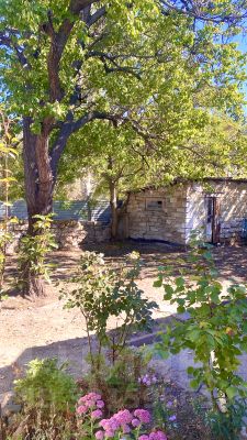 САМОЕ УДАЧНОЕ расположение дома - угловое, въезд во двор: распашные ворота + отдельно калитка для входа. Еще одним преимуществом данного объекта является гараж, который расположен напротив дома (т.е. отдельно, не на самом участке). Забор из камня. Небольшая хозпостройка на участке из ракушечника, можно использовать для хранения инструментов и стройматериалов во время ремонта.
