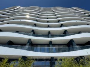Каждый элемент проекта подчеркивает исключительный статус его резидентов. Авторы проекта создали гармоничный диалог архитектуры и природы. Оригинальный дизайн лобби пластично сочетается с оформлением фасада, а в волнистом силуэте отражается ритмика горного пейзажа и магия водной глади. Оригинальные изогнутые элементы и пластичная композиция фасада формируют своего рода арт-объект бионической формы.