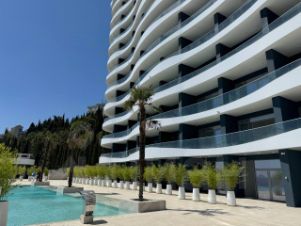 Площадь апартамента 35.7 кв.м. с учетом лоджии, расположен на 2 этаже, но фактически высота 5 этажа. С апартаментов в комплексе AURA открываются прекрасные виды на море, горы и кипарисы.