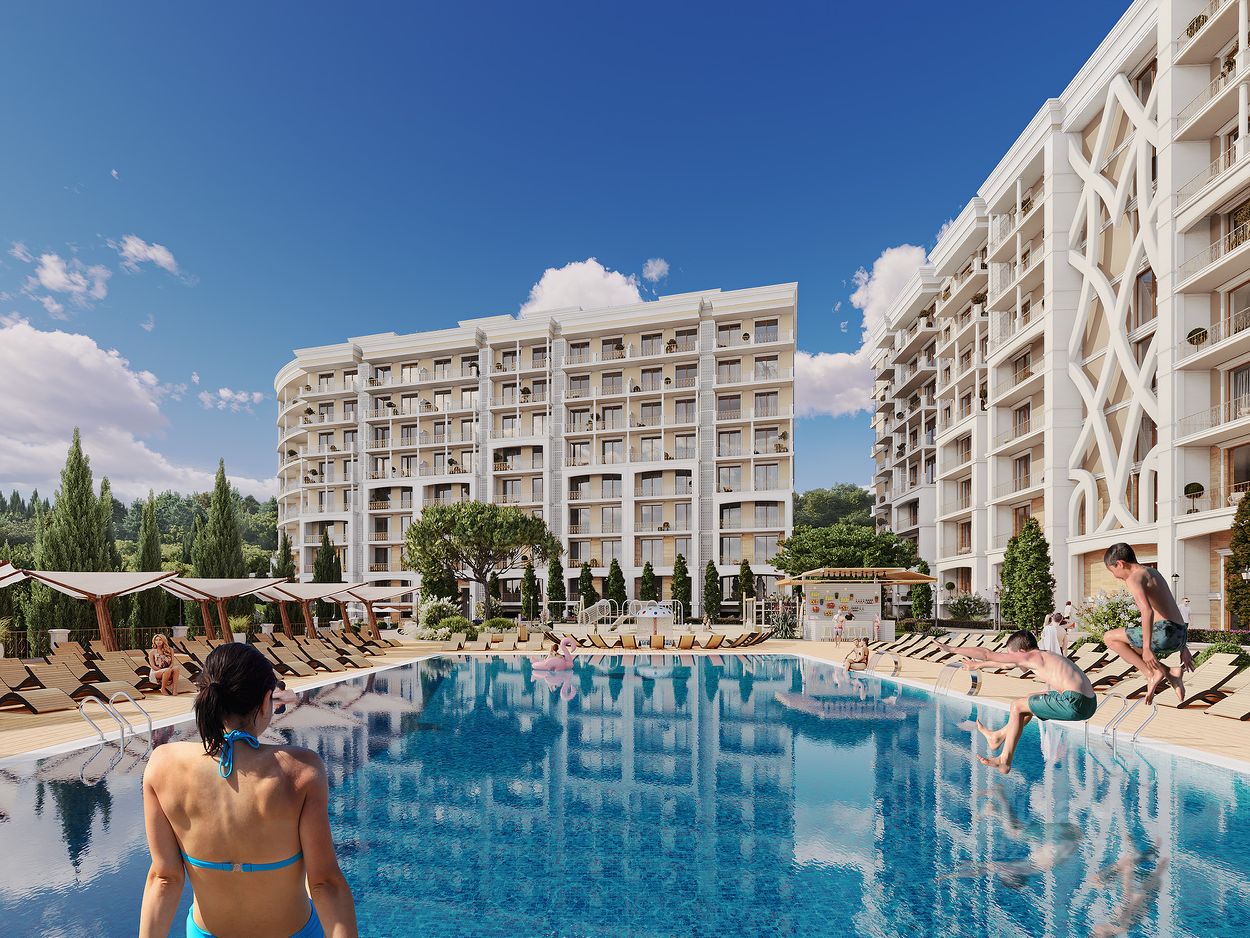 От ворот "Кедровый" всего 150 м до моря: чтобы спуститься к пляжу достаточно пройти по живописной пологой дороге, усаженой лавандой и можжевельником. Но искупаться можно и не покидая своего двора: в комплексе есть собственные открытые бассейны для детей и взрослых.