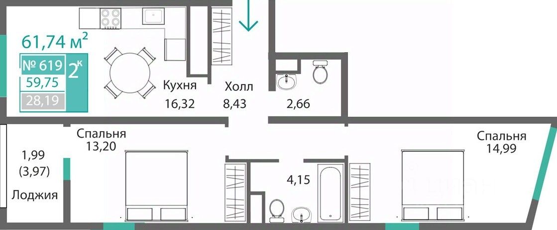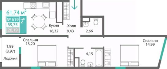 Продаётся 2-комнатная квартира в строящемся доме (Этап 4 (Секции А2, Ж2, Г4, В2, Г3)), срок сдачи: II-кв. 2028, общей площадью 61.74 кв.м., на 4 этаже. Новый жилой комплекс "Подсолнух" от застройщика "Монолит" расположен по адресу: Республика Крым, г. Симферополь, ул. Святителя Гурия