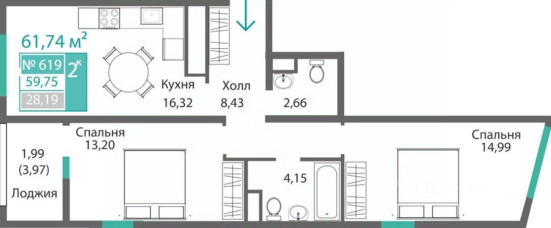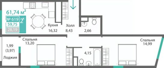 Продаётся 2-комнатная квартира в строящемся доме (Этап 4 (Секции А2, Ж2, Г4, В2, Г3)), срок сдачи: II-кв. 2028, общей площадью 61.74 кв.м., на 5 этаже. Новый жилой комплекс "Подсолнух" от застройщика "Монолит" расположен по адресу: Республика Крым, г. Симферополь, ул. Святителя Гурия