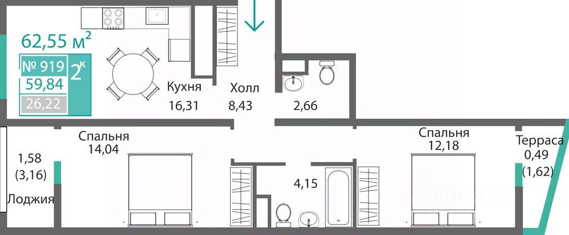 Продаётся 2-комнатная квартира в строящемся доме (Этап 4 (Секции А2, Ж2, Г4, В2, Г3)), срок сдачи: II-кв. 2028, общей площадью 59.84 кв.м., на 9 этаже. Новый жилой комплекс "Подсолнух" от застройщика "Монолит" расположен по адресу: Республика Крым, г. Симферополь, ул. Святителя Гурия