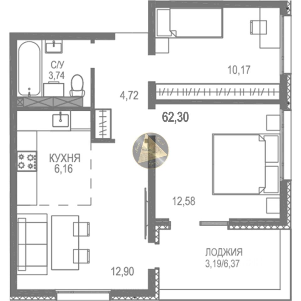 - Общая площадь квартиры 62.30 м2